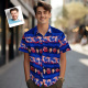 Custom Logo Hawaiian Shirts Colorful Leaves Aloha Beach Shirt Dark Blue