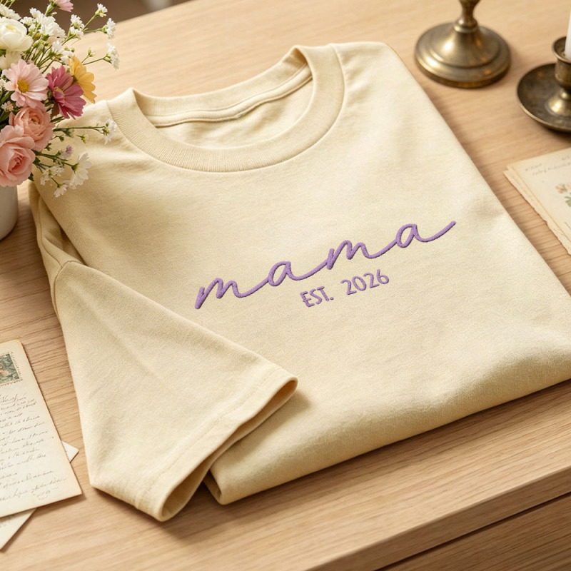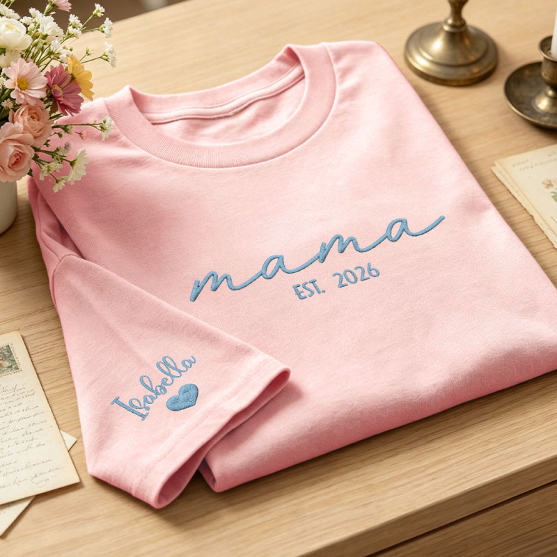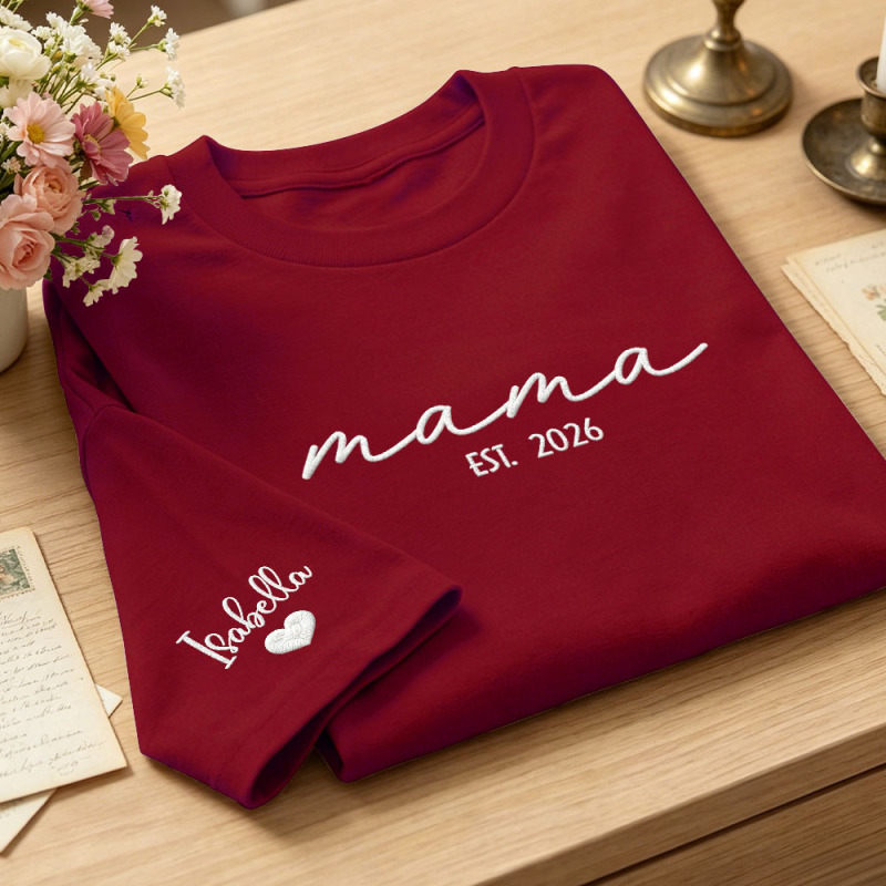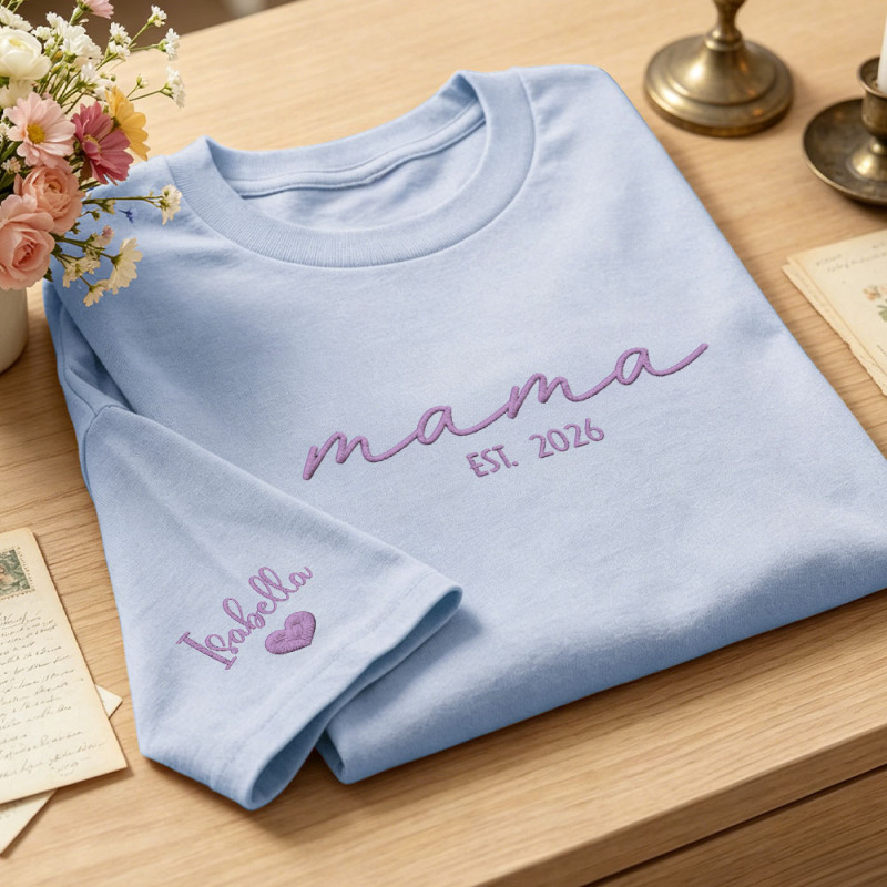 Custom Mama Embroidered T-Shirt Personalized Embroidered Tee for Mom New Mom Style Pregnancy Announcement Outfit Mother's Day Gift Selection
