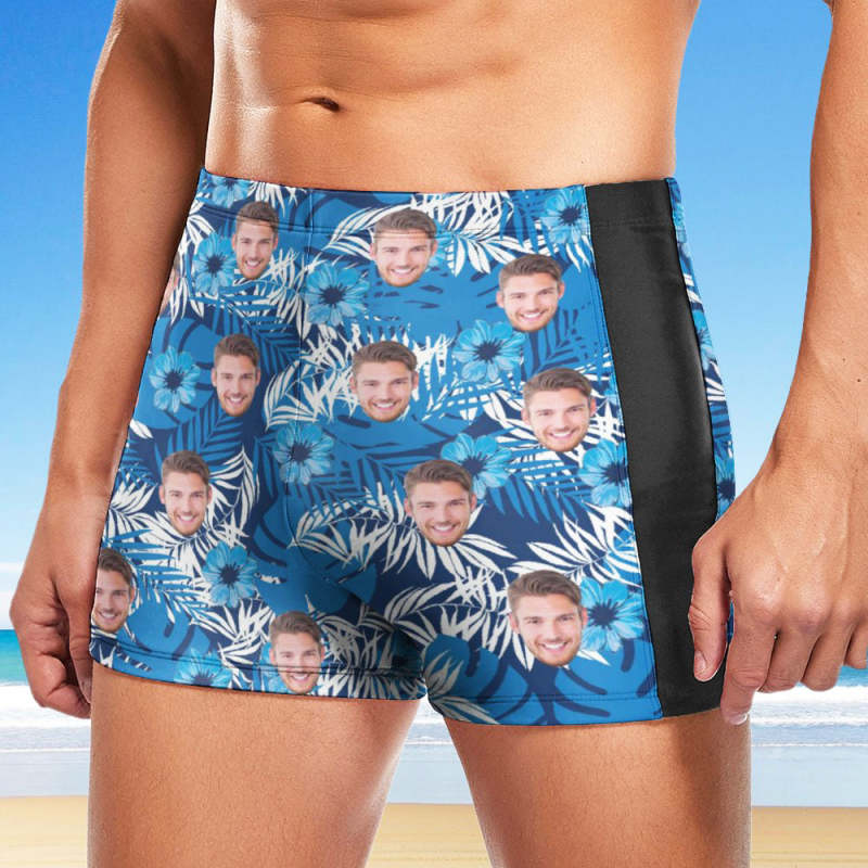 Custom Men's Swim Boxer Shorts, Hawaiian Face Swim Trunks, Peseronalized Swim Briefs - Flowers and leaves