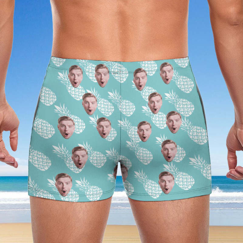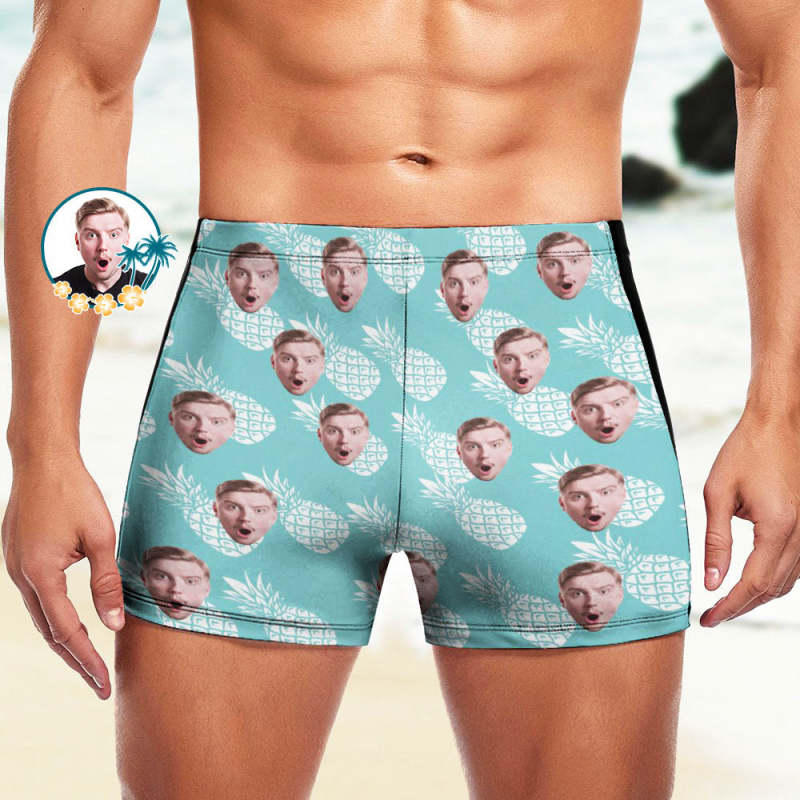 Custom Men's Swim Boxer Shorts, Hawaiian Face Swim Trunks, Peseronalized Swim Briefs - Hawaiian Pineapple
