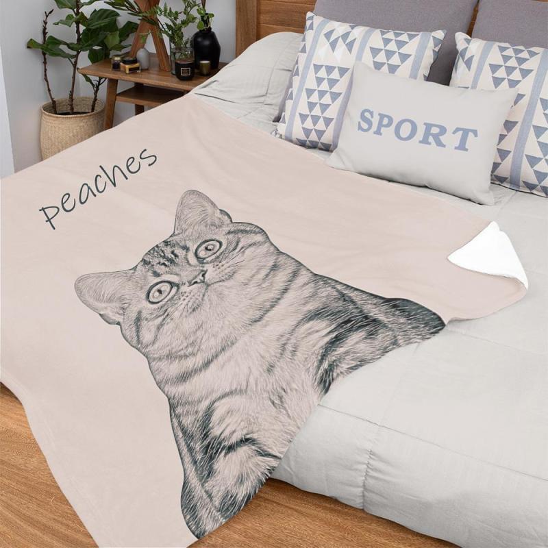 Custom Photo and Name Blankets Personalized Fleece Blanket Gifts For Family Sketch Cat