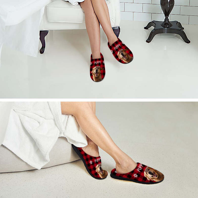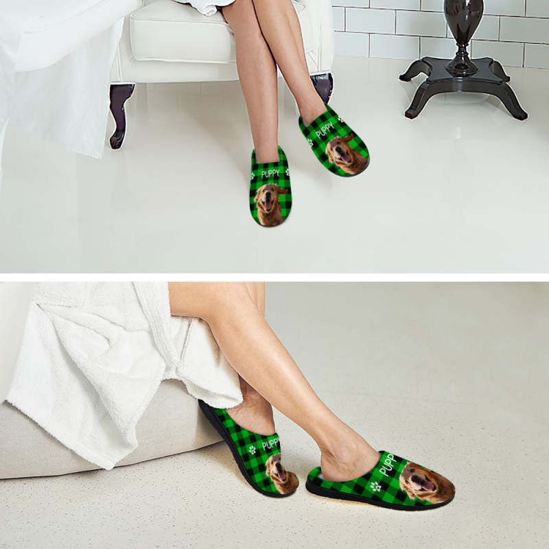 Custom Photo and Name Women Men Slippers With Footprint Personalized Green Casual House Cotton Slippers Christmas Gift For Pet Lover