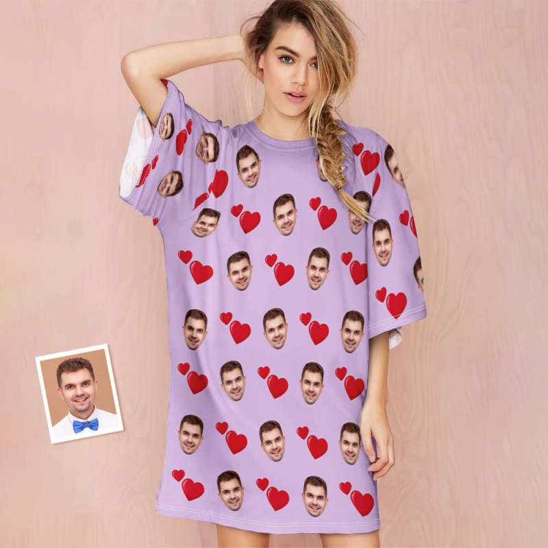 Custom Photo Face Nightdress Personalised Women's Oversized Nightshirt Heart Design Gifts