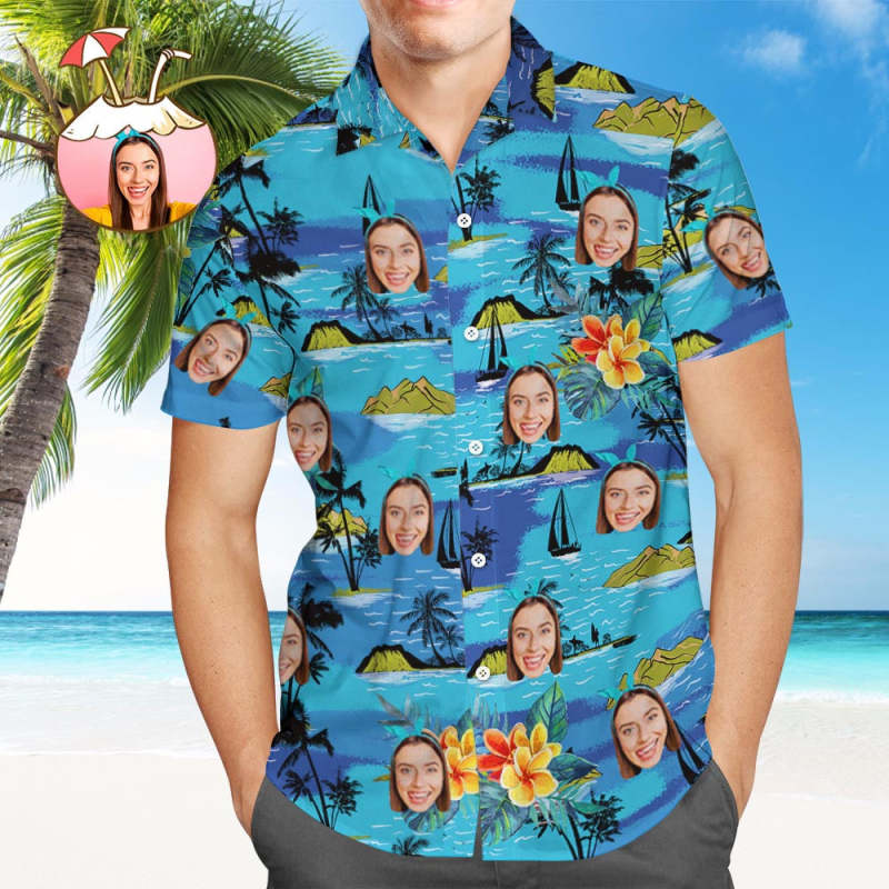 Custom Photo Hawaiian Shirt Parent-child Wears Personalised Face Hawaiian Shirt Gift Vice City