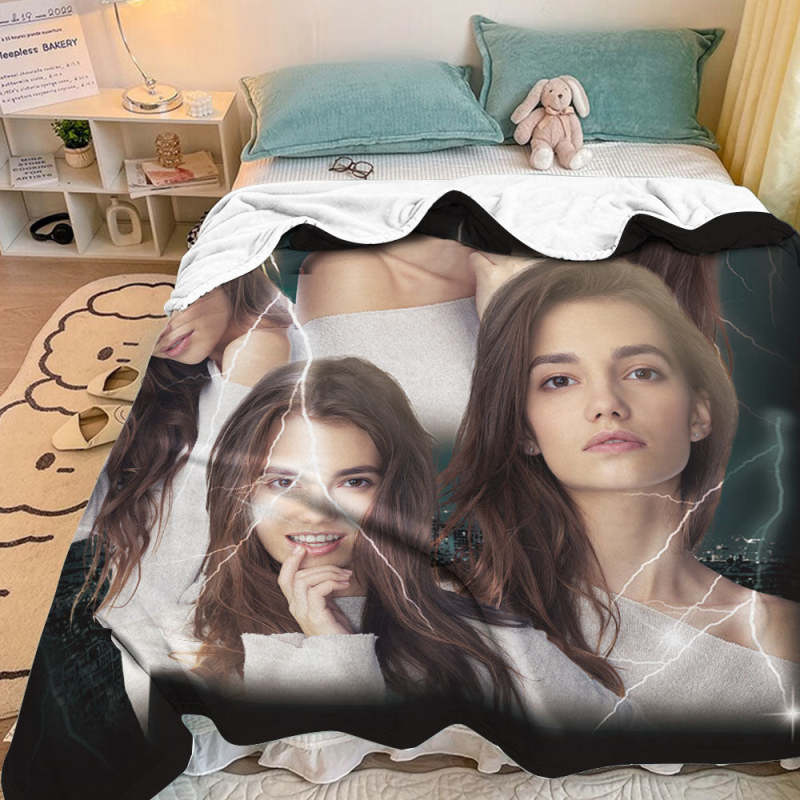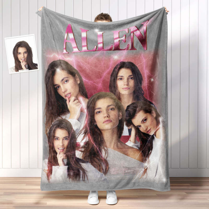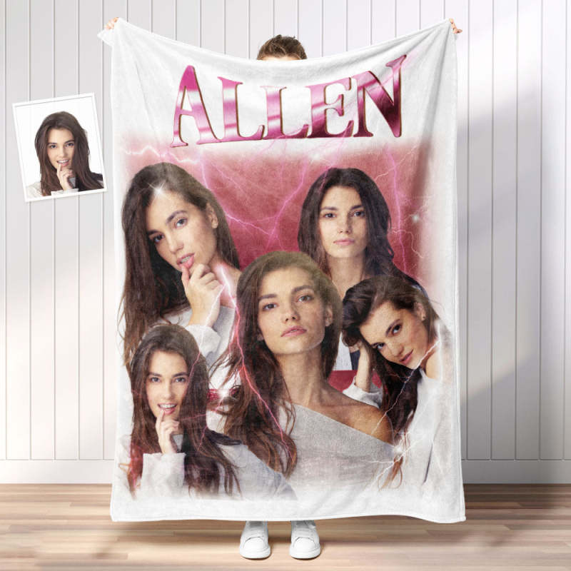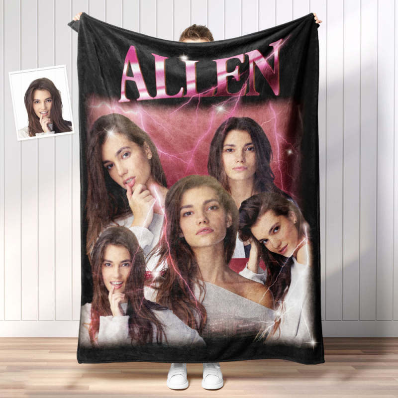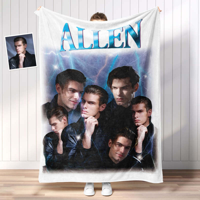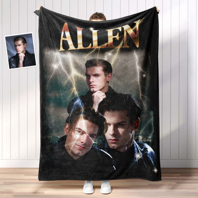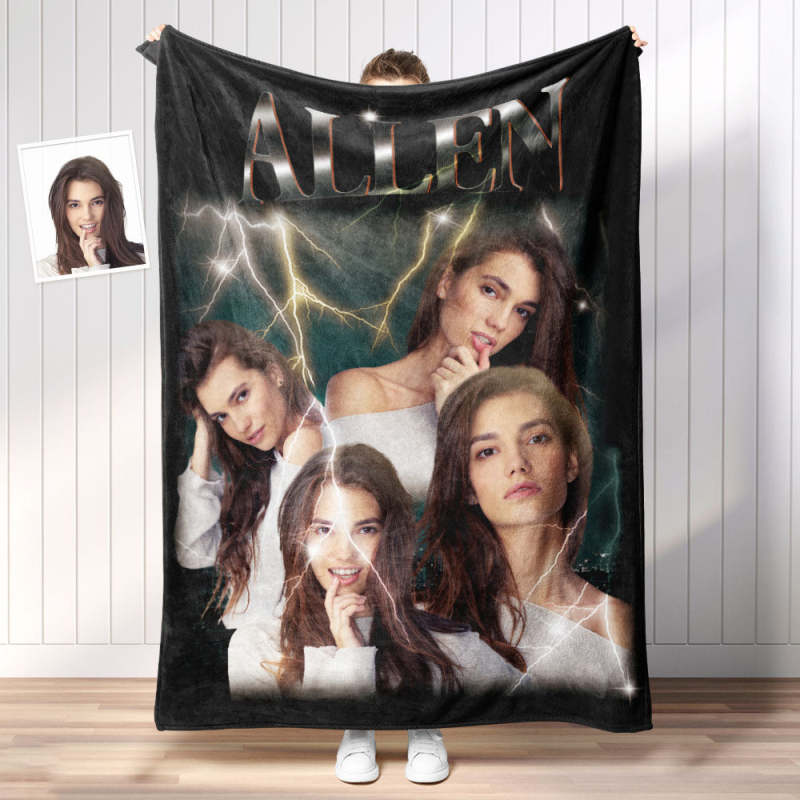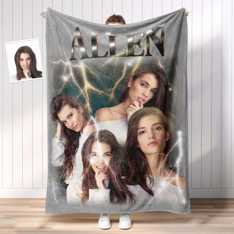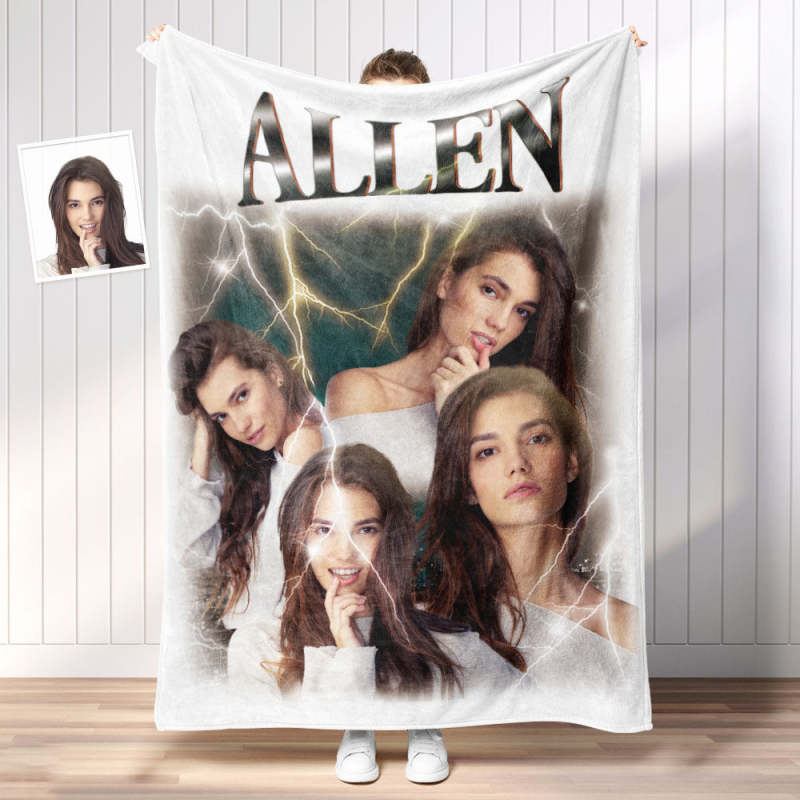 Custom Photo Vintage Tee Personalized Name Blankets Gifts for Lovers