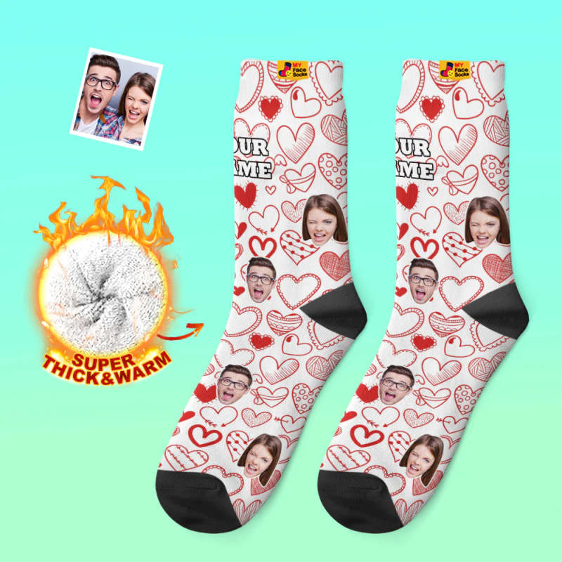 Custom Thick Photo Socks Valentine's Day Gift Warm Socks Fluttering Hearts All-Over Face Socks