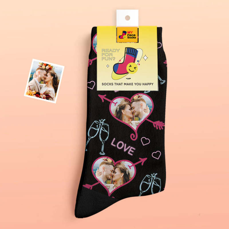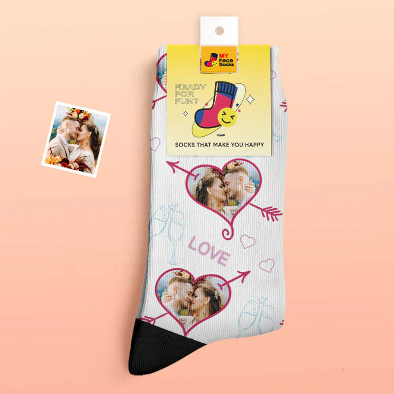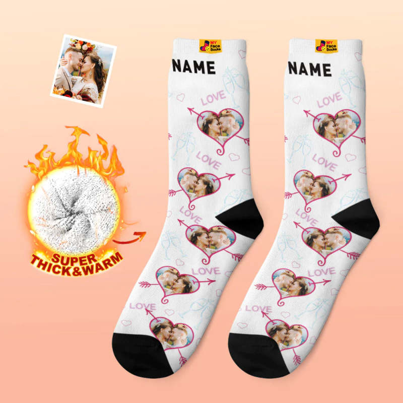 Custom Thick Photo Socks Valentine's Day Gift Warm Socks LOVE Heart Face Socks