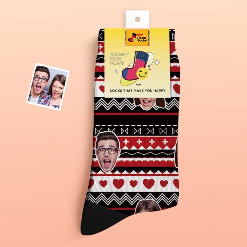 Custom Thick Photo Socks Valentine's Day Gifts Warm Socks Heart Funny Face Socks