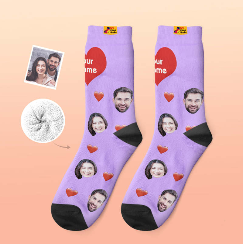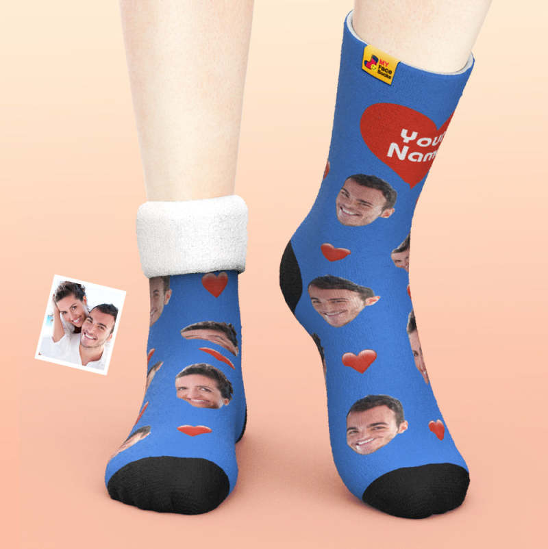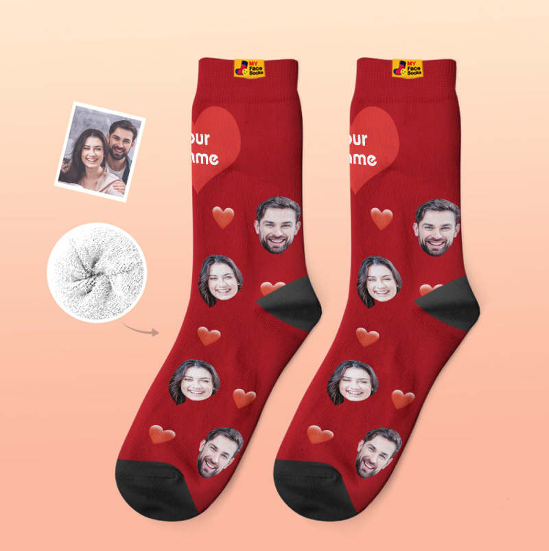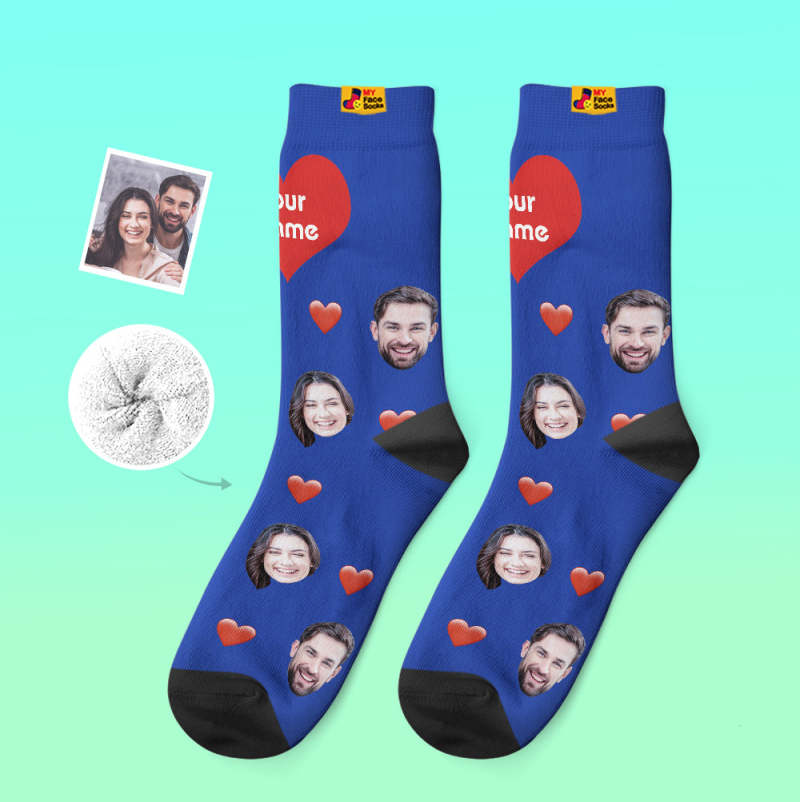 Custom Thick Socks Photo 3D Digital Printed Socks Autumn Winter Warm Socks Heart