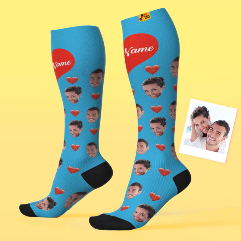 Father's Day Upgrade Custom Breathable Knee-high Compression Socks Online Preview Add Picture And Name Heart