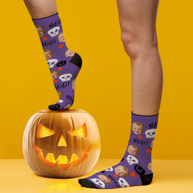 Funny Halloween Gift Personalized Photo Socks with Face Print