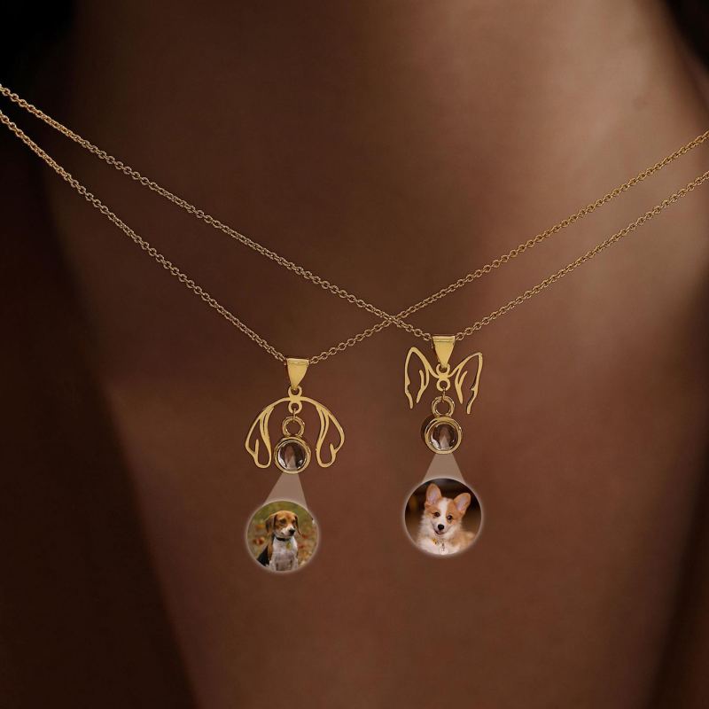Personalized Dog Ear Projection Necklace, Custom Picture Inside Jewelry, Pet Ear Picture Jewelry, Memorial Necklace, Christmas Gifts for Mom