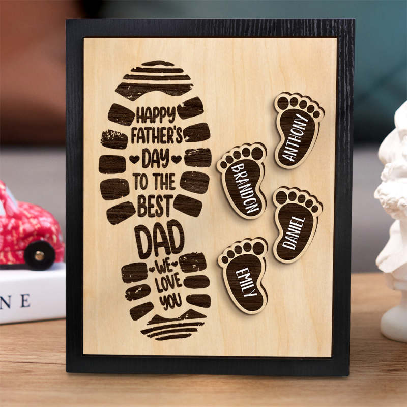 Personalised Footprints Wooden Frame Custom Family Member Names Father's Day Gift