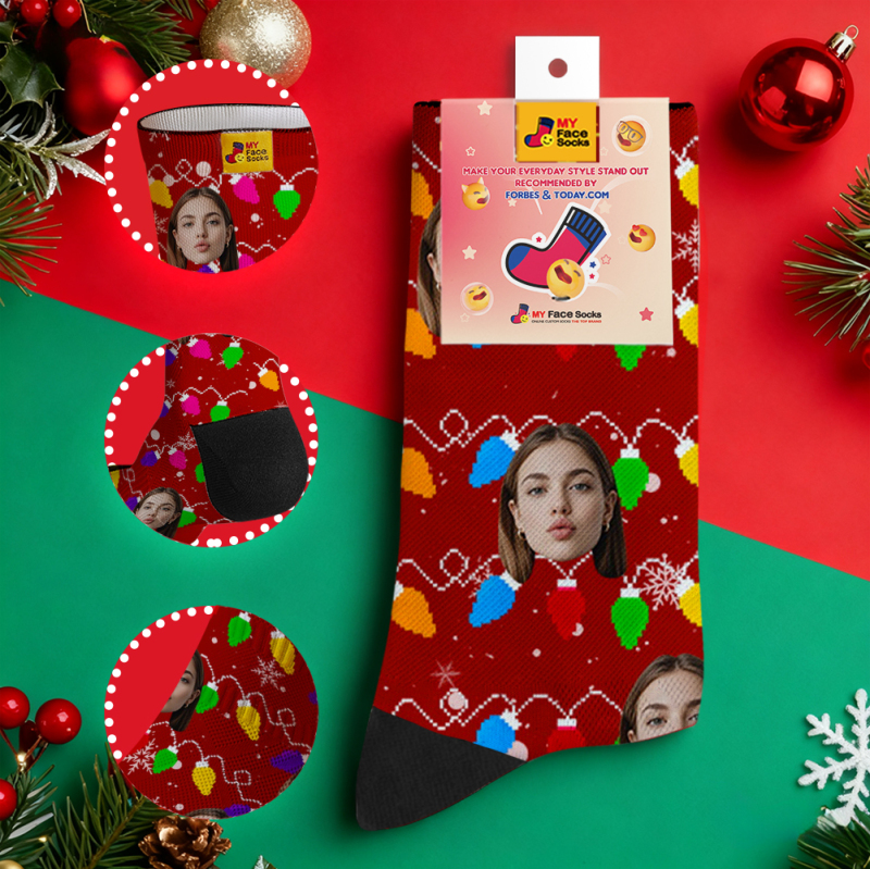 Personalized Multicolor Christmas Light Socks Custom Socks Perfect Family Holiday Gift Christmas Socks Gift