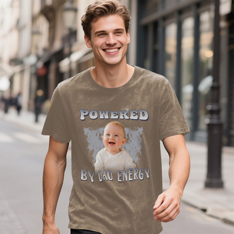 Personalized Photo Vintage T-Shirt Funny Fathers Day Gift for Dad, Retro Washed 90s Graphic Tee Kids Cute Custom Shirt