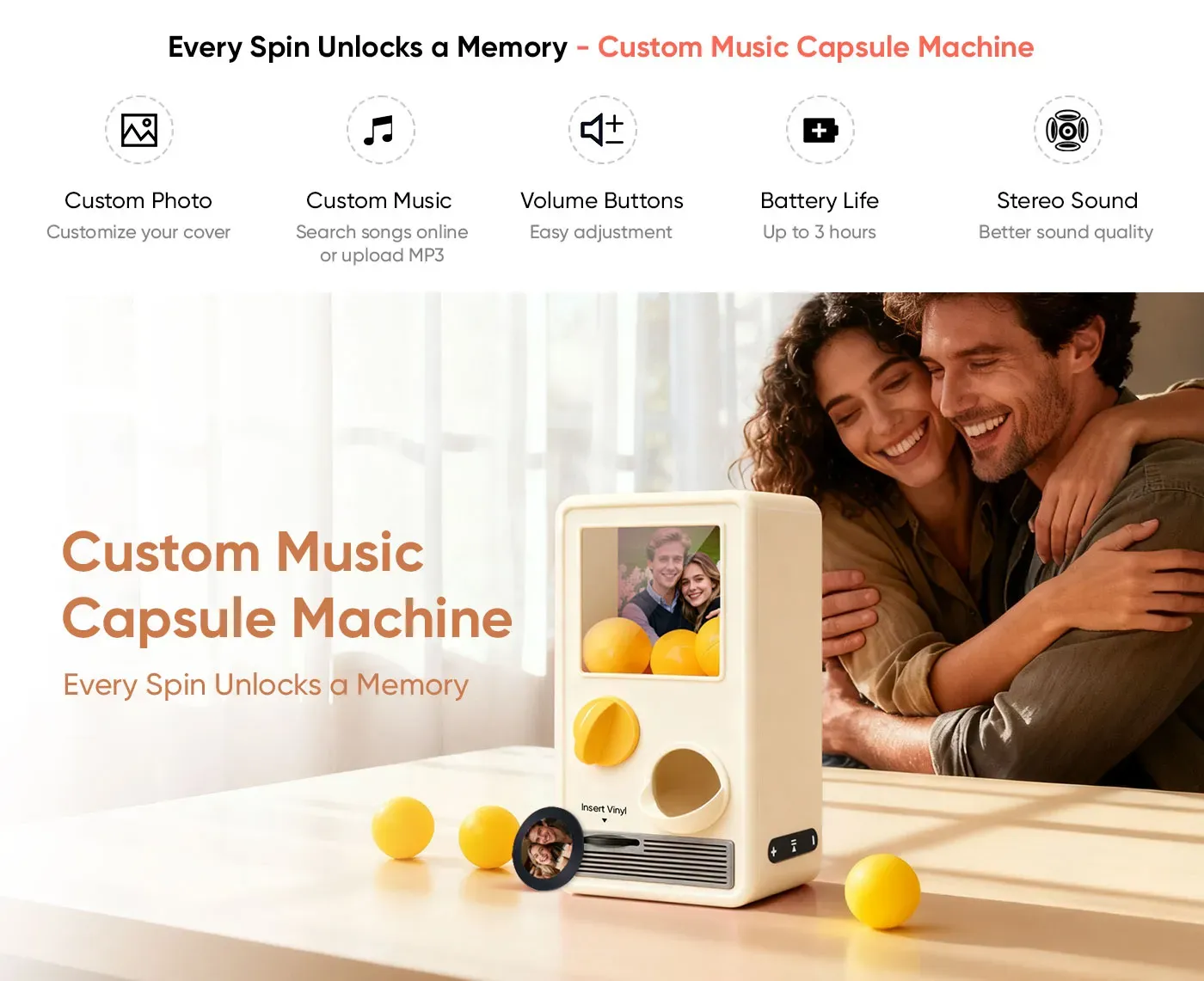 Personalized Music and Photo Music Gachapon Machine Custom Song Mini Record Box Retro Christmas Gifts for Her