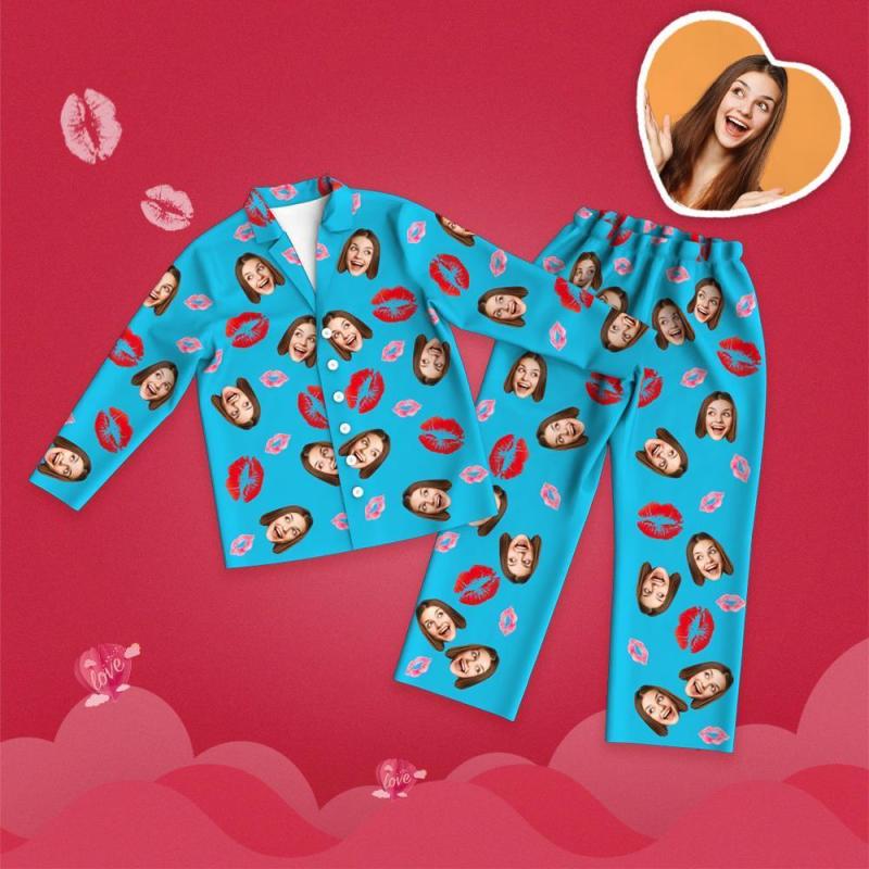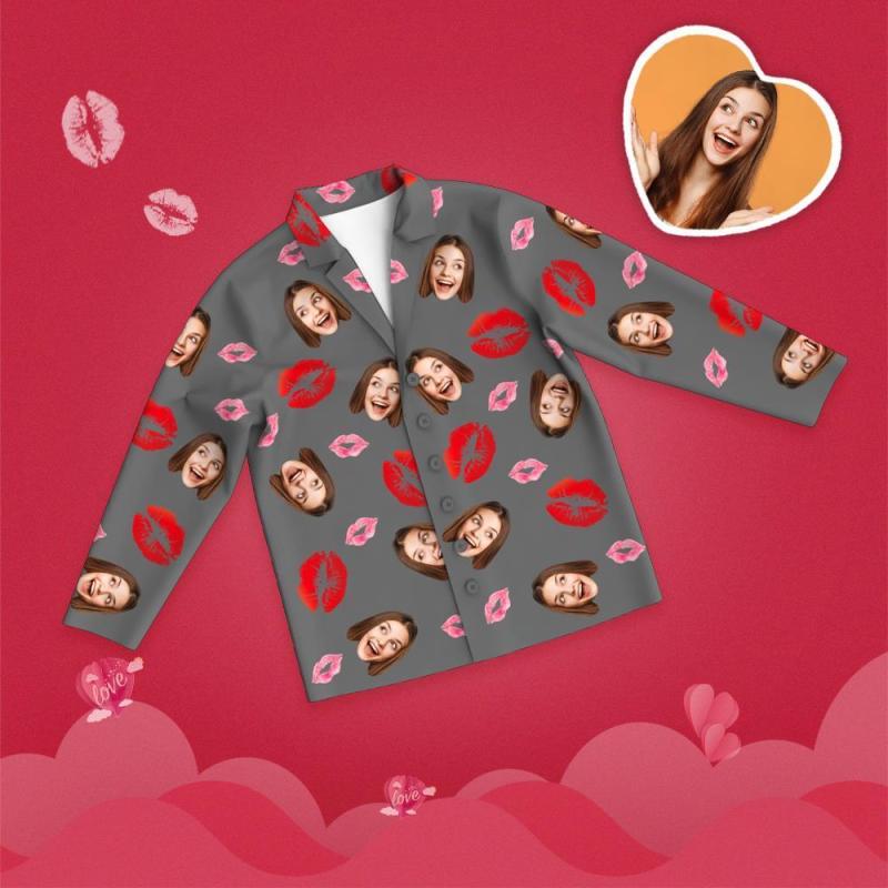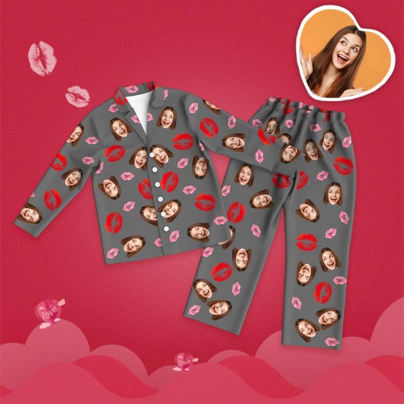 Custom Face Pajamas Lip Printed Long Sleeve Valentine's Day